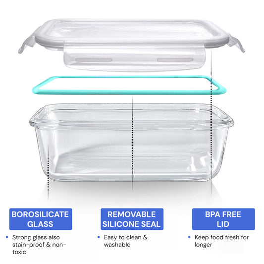 Glass Meal Prep Containers with Airtight Lids – Portion Control, Durable & Microwave Safe